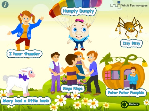 Yay, Nursery Rhymes. The most famous, the most popular, the ones we loved and sang as children. Now its our childrens turn to enjoy them. This app includes Mary had a little lamb, I hear thunder, Humpty Dumpty and more. See, sing along, enjoy and learn with the Most Amazing Nursery Rhymes.