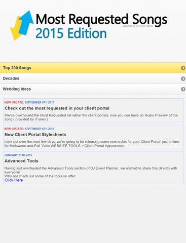 Designed for users of DJ Event Planner, this app allows you to check the most requested songs made on our systems.