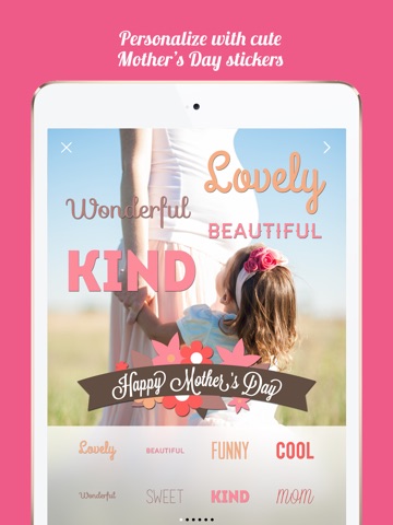 Mothers Day is coming. Take a photo and start decorating your photos. Or you can pick your favourite photo from your gallery. Personalise your photos into memorable moments with dozens of fun Mothers Day stickers and badges.
