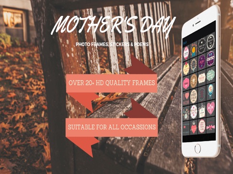 • Over 20 HD frames to choose from. Match whatever occasion the photos are taken. Get ready your camera and start clicking away. Add camera filters to add variations to your photos. Let your mom know how you feel about her by creating beautiful photo collages and send to her.
