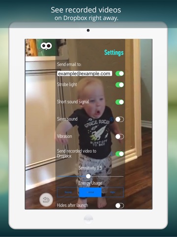 Perfect for catching your pets on camera or using it for security reasons. Works great as a hidden video camera - it will alert you if there is some action.