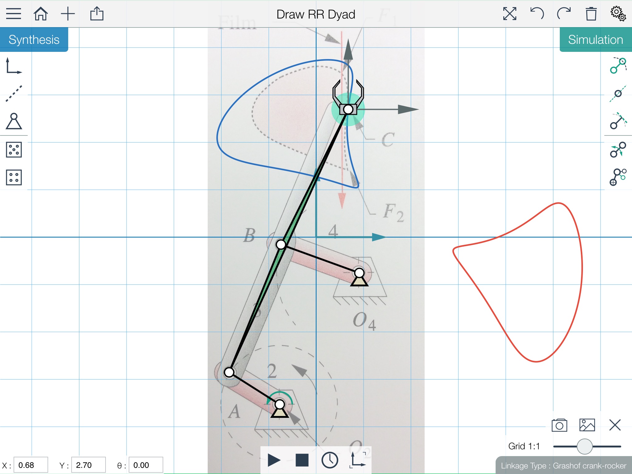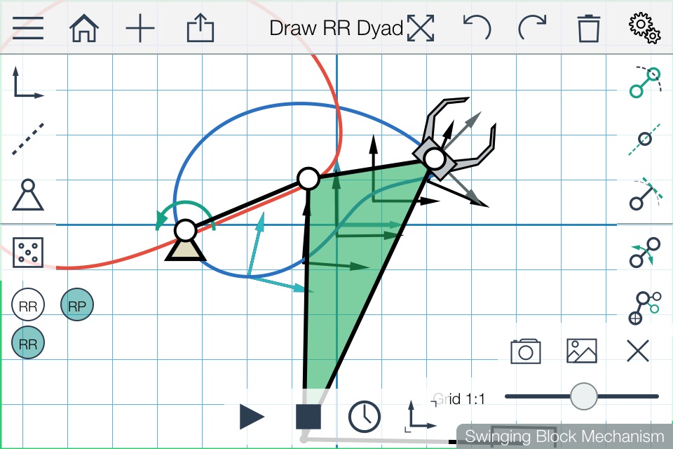 - Incorporates fixed- and moving-pivot and line constraints for 3 and 4 position problems.
