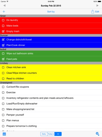 •Check off chores as they are done and they drop to the bottom of the list out of your way