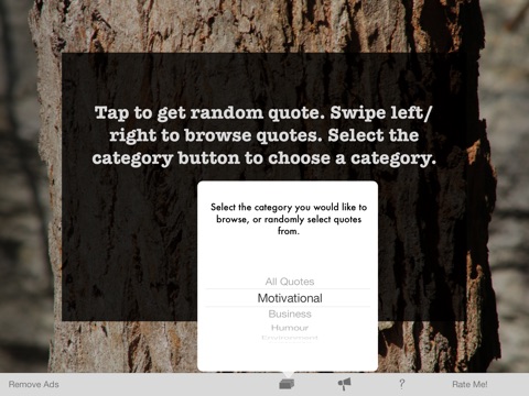 Simply tap to get a new quote, with an appropriately themed background to set the mood. Alternatively swipe left/right to browse quotes in order.