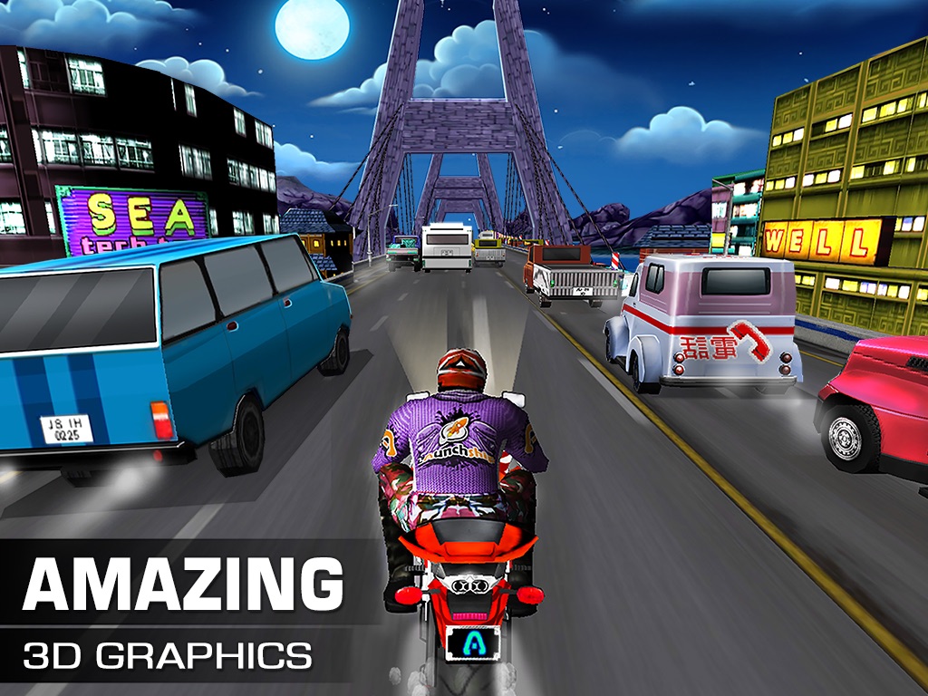 Drive your motorbike in the endless roads by passing the traffic, collect coins and upgrade to new bikes to get more control in the highway traffic to race ahead and get listed in the leadership board.