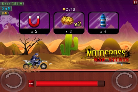 Motocross Mad Stunts Simulates the feeling of Adrenaline Rush in you.Do as many stunts possible, that is the only way you can keep increasing the boost.