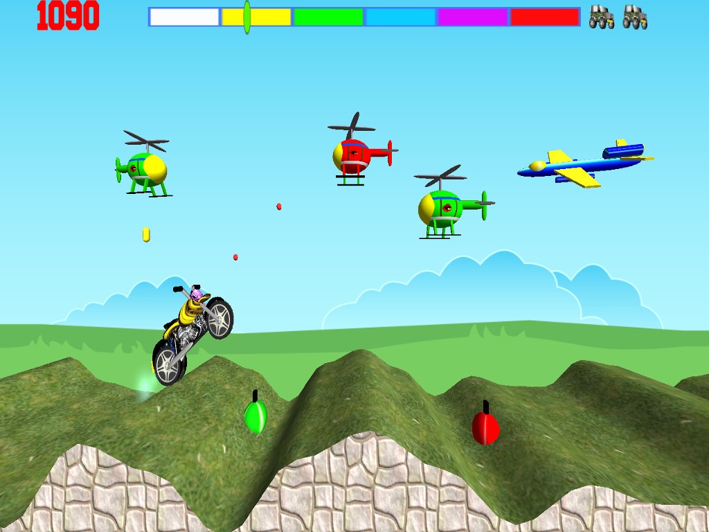 Enemy choppers will try to destroy your motorbike, luckily you are equipped mini cannons so you have ample fire power to defend your motocross bike.