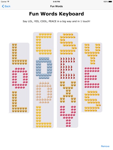 Whether its to write LOL, HEY, AWESOME in huge emojis in one tap, or to say I LOVE YOU with multiple hearts, Motu Keyboards will change the way you write on your device. Take texting, messaging, sharing to the next level!