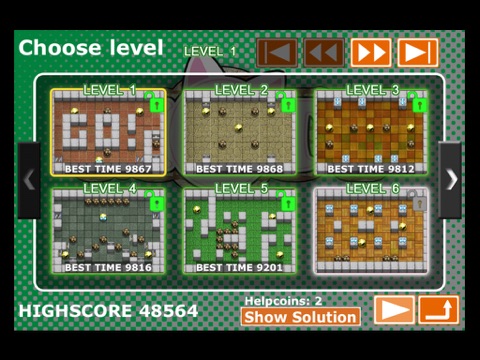 ✓ Help function shows you the solution of a level (Helpcoins needed)
