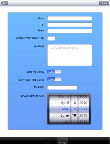 MountainLamp Greetings - Greetings for all occasions. Easily create and send Birthday, Wedding, Anniversary, and other special occasion greetings to your family and friends. The cards are accompanied with melodious music, and come with a variety of selection. You can schedule the greeting to be sent at a future date, send a copy to yourself, and receive notification when the recipient views the greeting.