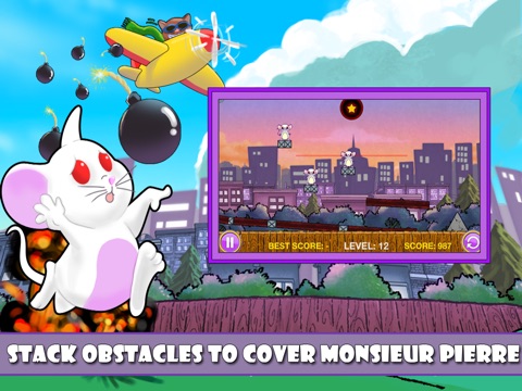 The Cat & Mouse rivalry has been battling on for years! In this latest take, your main objective is to protect Monsieur Pierre, (well call him Mr. Mouse) from the mischievous cat whos ultimate goal is to bomb him to smithereens!!