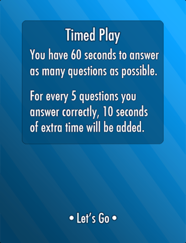 • Timed Play: Race against the clock to answer as many questions as you can before time runs out and achieve a new high score.