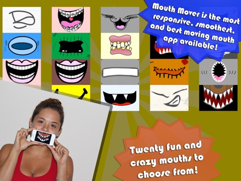 Having a new mouth couldnt be any easier! Simply put your iPhone, iPad, or iPod touch in front of your mouth to show off to your friends and family! Choose from twenty hand drawn mouths to speak with and have a blast with your funny new face!