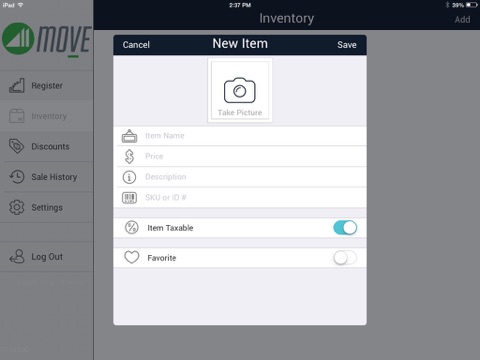 Inventory Management – Create a library of items to sell from your Move Mobile POS and easily add new products with pictures in seconds.
