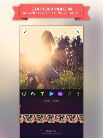 Choose from 30 carefully selected filters (and growing!) Add as many filters as you like to a single Video.