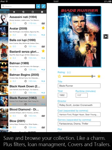 Filter your collection by name, cast, rating, dics type(DVD or Blu-Ray Disc) and much more...