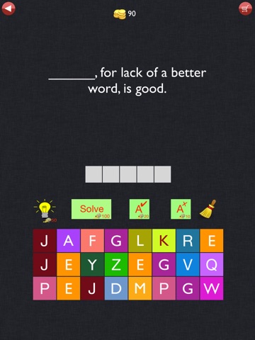 various help options like remove letters, reveal letters, reveal answer.