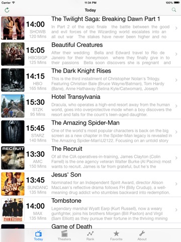 this app lists movies currently playing on movie channels and cinema. Dont waste your time watching bad movies! Compare the ratings to find out which movie worth watching. Get information on synopsis, genre, reviews, actors, director and more.