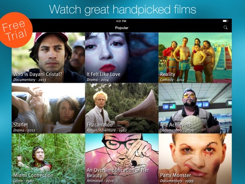 Enjoy a free one week trial and start watching amazing films today. Fandor makes it easy for you to find and stream the right film to watch. With the biggest handpicked collection of the most-talked-about indie, foreign and documentary films from around the world, there’s always something great to watch, whatever your mood.