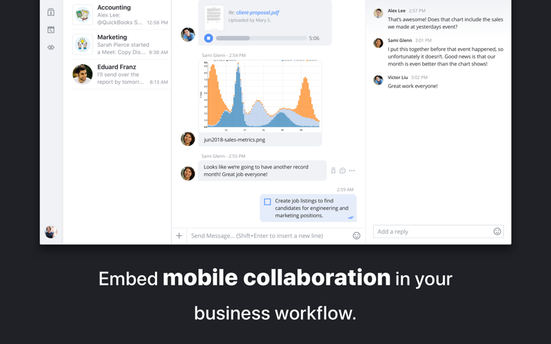 Moxtra is a collaboration solution built to accelerate business. Present, secure feedback, get approvals on content to close business while on the go. Collaborate on documents and content across teams, with customers, partners, and colleagues. Recreate the power of face-to-face meetings with secure messaging, robust document collaboration, video conferencing, electronic signature, and more – in context. Moxtra is an secure, enterprise class service available as a white-label, private cloud, or on-premise solution.