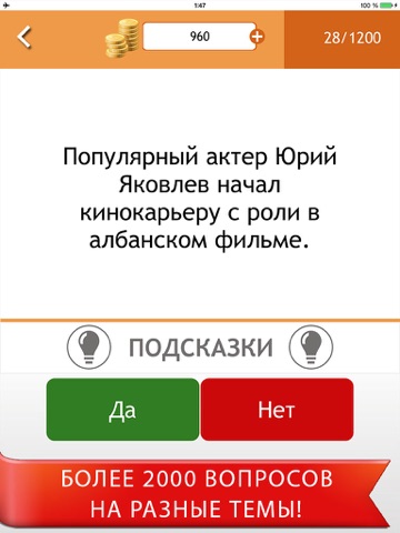 Всего в игре более 2000 вопросов, на большинство из которых даны развернутые ответы. Тематика вопросов самая разнообразная — искусство и наука, спорт и география, история и религия, музыка и кино. И это далеко не полный список. По сути, эта игра — своего рода музей любопытных фактов, некоторые из которых станут настоящим откровением даже для самых подкованных эрудитов.