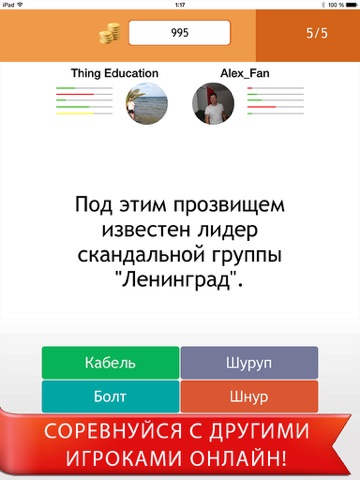 Для переключения викторины нажмите на ее название или на кнопку настроек. Вы можете играть как в одиночку, так в режиме онлайн с живым соперником. Онлайн поединки состоят из пяти раундов и очень скоротечны (не более минуты). Выигрывает тот, кто ответит на большее количество вопросов, а если оба игрока дали одинаковое количество правильных ответов, победитель определяется по времени.