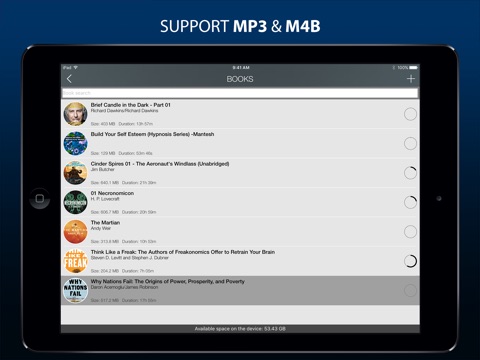 В плане процесса прослушивания книг к работе плеера нет никаких нареканий. Но вот когда загружаешь книгу из другого приложения по трекам первая дорожка появляется а следующие треки не видно. Часть загружается, часть нет. Хотя формат файлов одинаковый. И невозможно понять загрузился трек или нет. Исправьте пожалуйста.