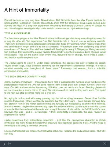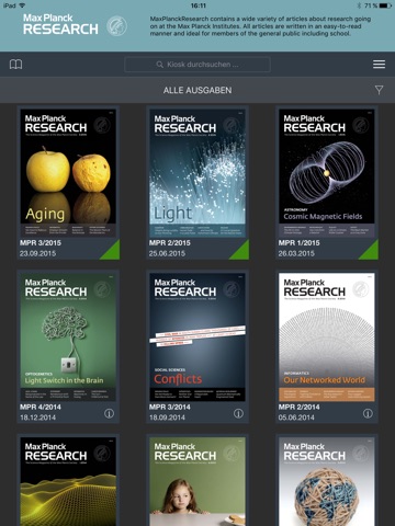 Research doesnt have to be heavy: the Max Planck Societys science magazine, MaxPlanckResearch, is now available as a free eMagazine to read on your mobile tablet. The eMagazine fills you in on the history behind the stories – thoroughly researched and written in an accessible manner. Renowned science journalists visit the research institutes of the Max Planck Society and look over the shoulders of scientists while they go about their work. This is how we deliver first-hand reports on what science is up to today and will achieve tomorrow.