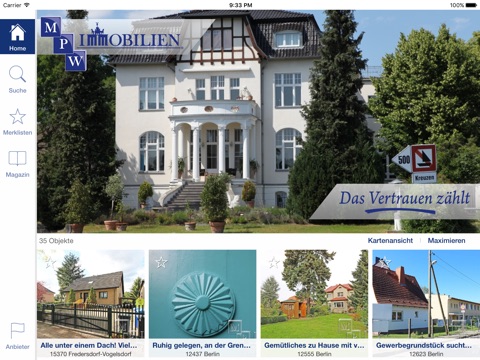 Die MPW - Immobilien App bietet die Möglichkeit bereits vor Veröffentlichungen in den einschlägigen