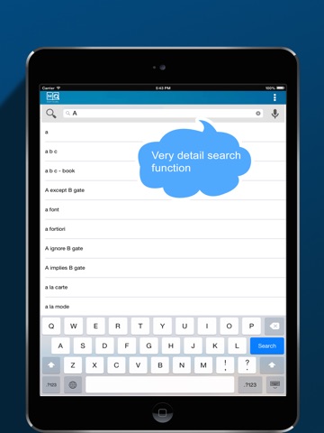 If you feel boring each time you search by type word with virtual small keyboard of you mobile or tablet, MQDict will help you input word by new way with search by voice function. It is so easy by speaking the word you want to search, search result will display.