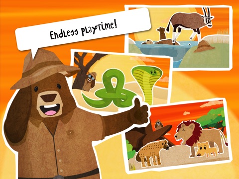 Mr. Bear is traveling the world! In this wildlife game he will explore the safari and savanna, where he will travel through the jungle, help his new friends and feeds the animals!