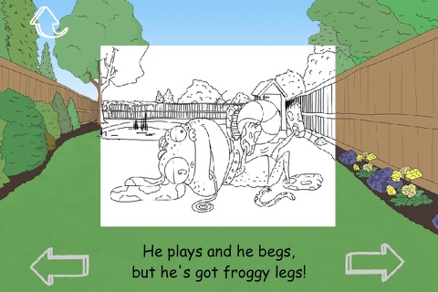 "Mr Frog, the Neighbours Dog" is an interactive book which follows the exploits of a frog that is quite obviously pretending to be a dog and the outrage of the person observing his shenanigans next door.