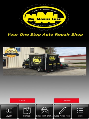 Welcome to the official app for Mr. Mobile Lube, an easy-to-use, free mobile app designed to conveniently address all of your issues concerning your vehicles auto performance and maintenance needs. Mr. Mobile Lube is a superior quality company that proudly offers dedicated, quality import auto repair and auto maintenance work within the greater Boise, ID area. Mr. Mobile Lube offers a complete range of repair and maintenance services including Full Service Auto Repair, Fleet Vehicle Service, Auto Maintenance, Heavy Duty Truck Repair, Brake Repair, Engine Repair, Transmission Repair, Oil Change & Tune Up and Headlight Restoration. Functional features of the app provide you with easy access to such things as - Quick contact features, including single-click calling, e-mail, and directions, referral program and loyalty rewards.