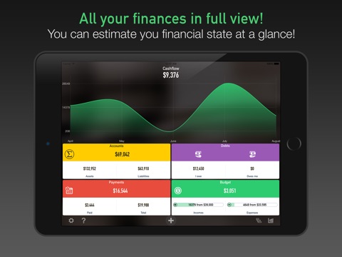 - Its necessary to see all your financial indicators in full view. Imagine that youre in unknown district of your city, and dont know where youre and where to go. But then you look into map, see the whole district and now you have a clear picture in your head of where youre and where you should go. Dashboard is a map for your finances, it gives you understanding of how much money you have, what part of them you should pay for bills and what is left to free spendings. And you can see how effective your current money management - will your cash flow increase or decrease, hence your financial assets will grow or deplete. This all helps you see are you getting rich or poor with this budget plan, and when you know the plan you can correct it until it become real!