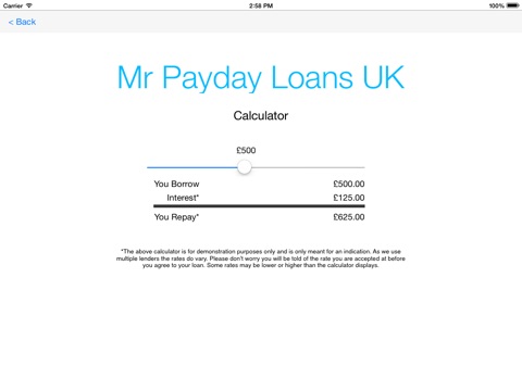 The loans rates are dictated on your credit history and are very competitive. We hope you find this app helpful and easy to use.