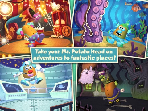 - Take your Mr. Potato Head on spud-tacular interactive adventures to fantastic places with fullscreen touch sensitivity.