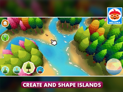 Mr.Luma`s Island delivers a beautiful and peaceful experience in creating your own island. Shape land in however you want and plant colorful trees in different shapes and sizes.