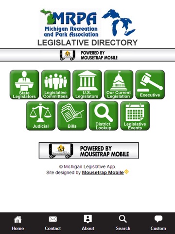 The MRPA Michigan Legislative App is a directory that provides an easy listing of legislators, executive branch officials as well as judges. It also gives you quick access to search and contact all legislators.