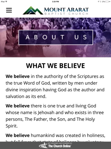 This is the official Mt. Ararat Baptist Church iPhone/iPad/iPod touch Application. Download this FREE App today to connect with Mt. Ararat Baptist Church and experience messages from Dr. William H. Curtis. Watch our services LIVE, listen to music and more. The Mt. Ararat Baptist Church App was created by The Church Online.