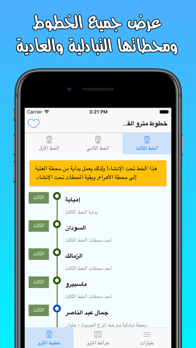 تطبيق بسيط يحتوي خرائط وخطوط ومحطات مترو القاهرة كلها دائما وفي أي وقت على هاتفك الذكي.