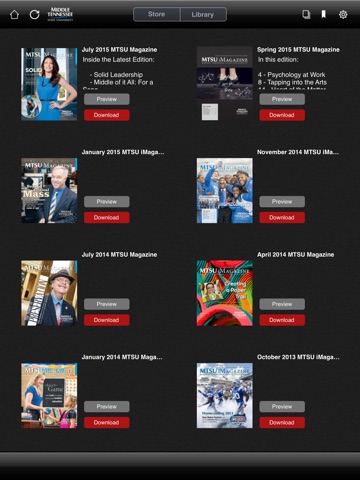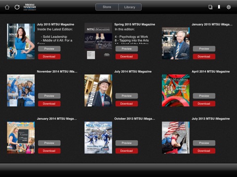 MTSU Magazine is the alumni and friends magazine of Middle Tennessee State University. The MTSU Mag app includes multimedia content built into every issue that you wont find in the print editions! Are you True Blue? Download now and keep up with your university.