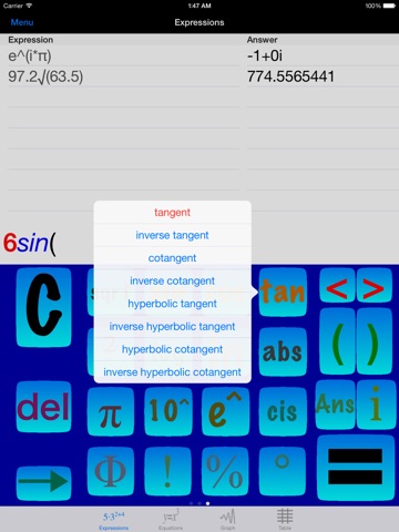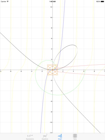 • Graph and table functions, polar equations, parametric equations, implicit equations, and implicit inequalities