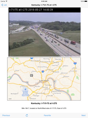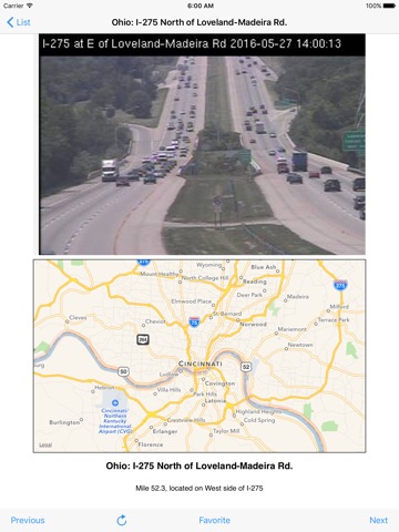 Cincinnati Traffic Cam comes pre-loaded with indexed links to 121 traffic cameras. Cameras are provided by the Ohio Department of Transportation (ODOT) . Individual cameras may be inoperative due to weather conditions or maintenance requirements.