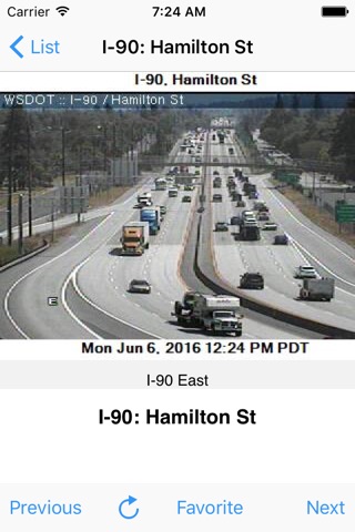 Touch the Favorite button on any camera page to copy the traffic cameras that matter to you to your Favorites list for faster access. Switch quickly from Show All to Favorites mode. In Favorites Mode the Previous and Next buttons follow the Favorites list.