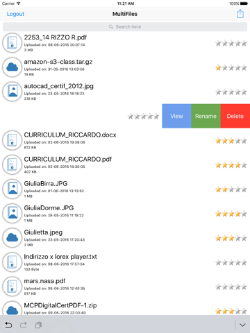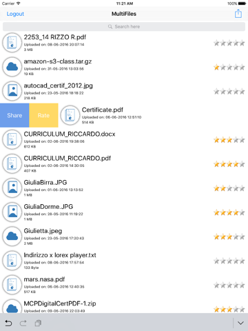 Multifiles is the App to storage your documents, photos and videos. Your files are saved on Multifiles cloud space and you can get them from other devices. Everywhere. Discover how is easy to upload any kind of files from your device directly from other App such Mail or Photo. Compatible with the share function of your iOS device.