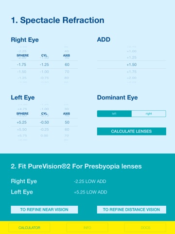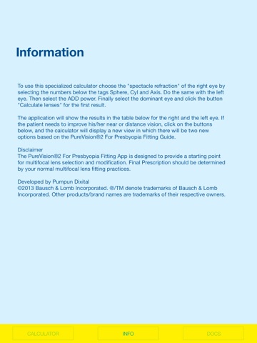The PureVision®2 For Presbyopia Fitting App is designed to provide a starting point for multifocal lens selection and modification.