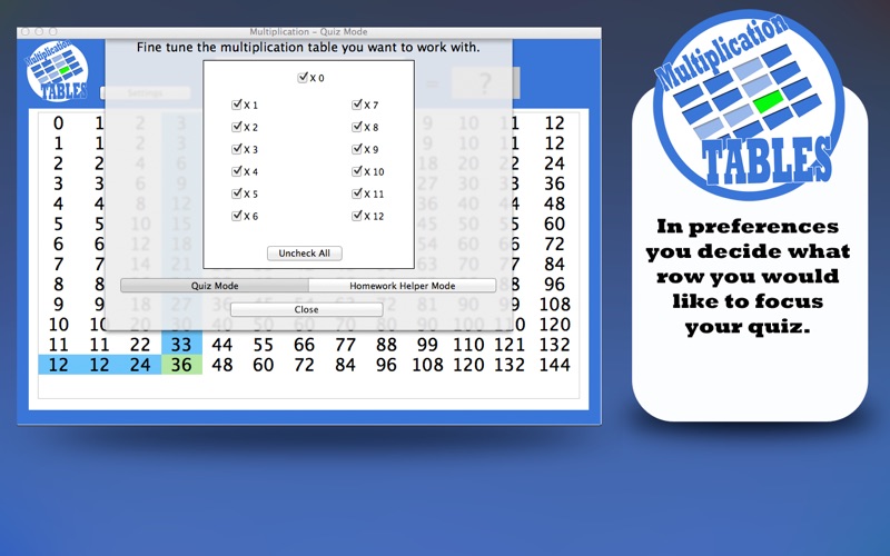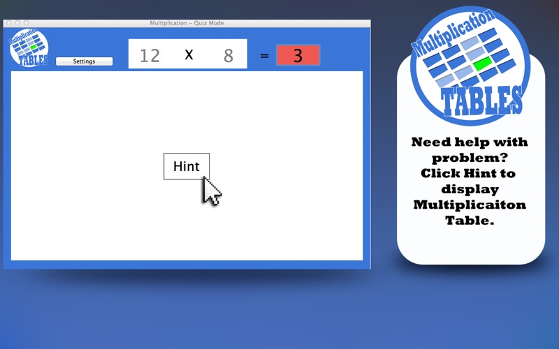 This program was designed to assist those learning their Multiplication Tables. There are two modes to work with in this application