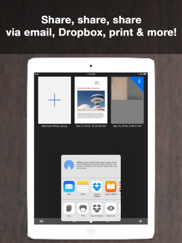 Easy share to email, save to dropbox, message, print, Airdrop, copy & more.