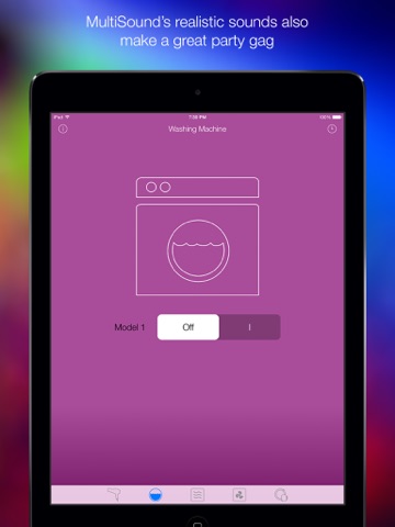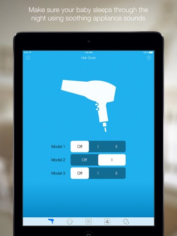 Many babies can only fall asleep with monotone sounds in the background, for example that of a hair dryer. Also people with an intense Tinnitus often require static noise in the background to rest. You can now switch off the hair dryer and save yourself a high electricity bill. MultiSound features the sound of five typical household appliances. Some have multiple models and kinds of sounds. The most important features are: