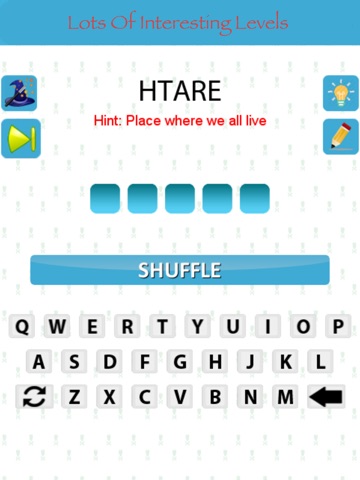 Mumbo Jumbo is a word puzzle game based on Anagrams, that gives you a group of scrambled letters and requires you to unscramble them to make a real word.